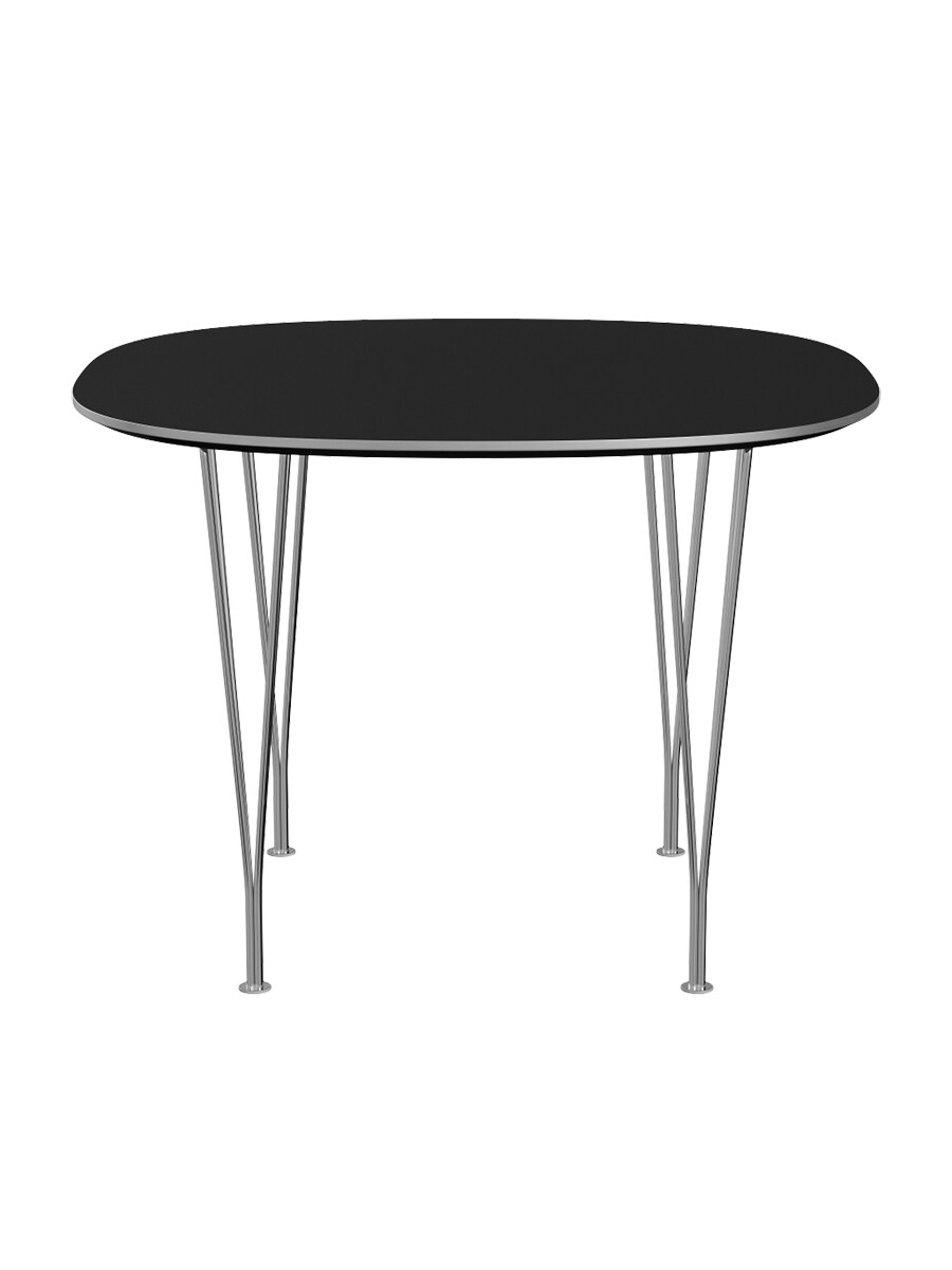 Piet Hein B637 Bord fra Fritz Hansen Bordet blev designet af Piet Hein, Bruno Mathsson og Arne Jacobsen i 1968. Mål: H 72 x L 140 x B 80 cm Bordet findes i følgende varianter, alle med aluminiunmskant undtagen valnød som har finérkant. Laminatfarver: